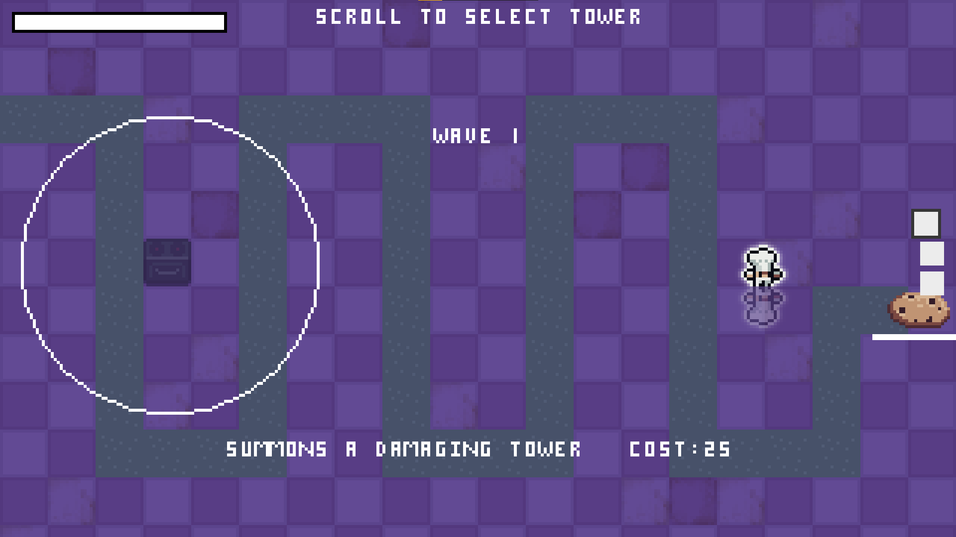 Hello, thanks for checking out my game. Unfortunately its not finished i ran out of time. You play as a little chef who in his pursuit to make the worlds greatest biscuit drew the attention of some not so friendly demons. Defend the biscuit by using your health to build and upgrade towers.